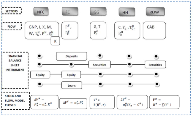 С.3 The ability to model flows into and out of financial sectors like banks and central banks, and explicitly see the effects across the macro-economy of a change in interbank lending, say, that leads to a credit crunch (Kinsella and Khalil, 2011), is for us the main benefit of stock- flow modelling. |
