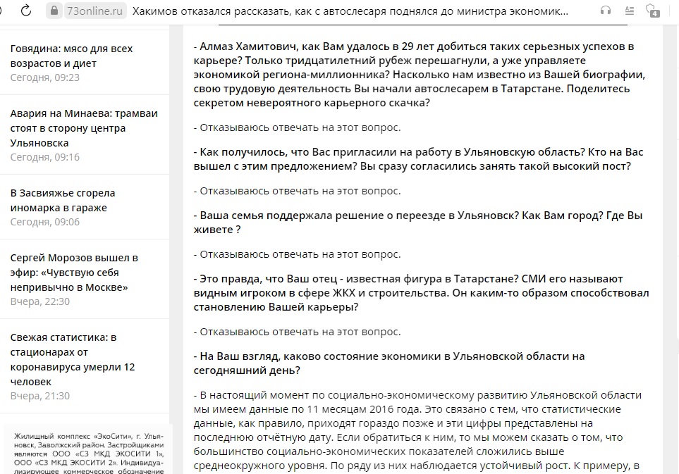 Тогда ульяновское СМИ заинтересовалось столь стремительной карьерой молодого министра и его родственными связями, однако ответы получило более, чем странные.